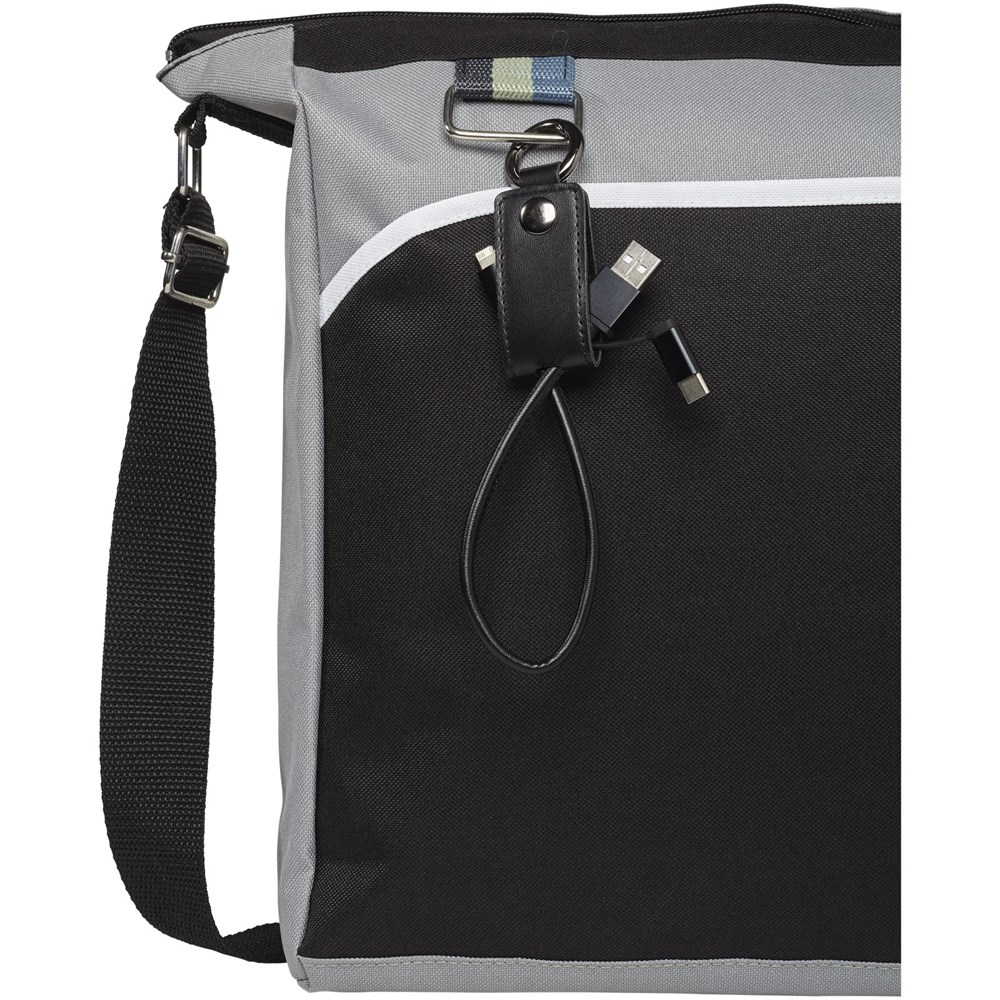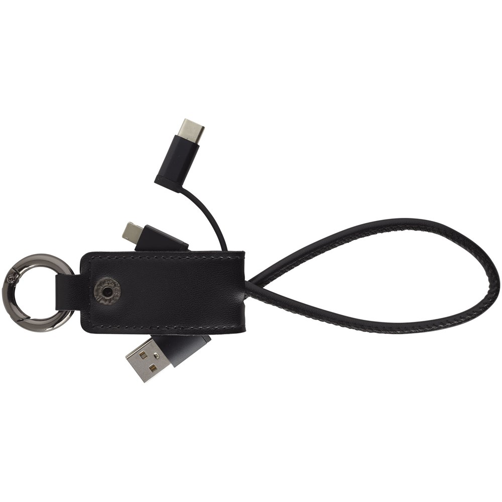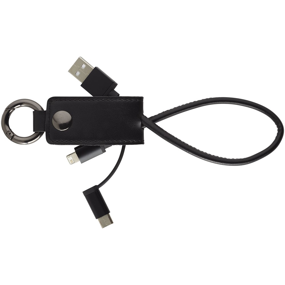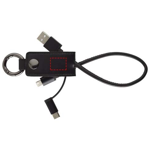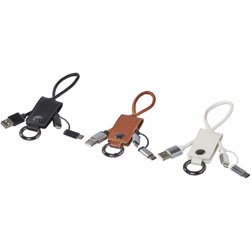 Dieses praktische Ladekabel ist mit einer weichen Schutzklappe ummantelt, die einen USB-Typ C-Adapter und eine 2 in 1 Dual-kompatiblen Adapter für Apple iOS und Android Geräte enthält. Der Ring befestigt das Ladekabel an Ihre Schlüssel oder Tasche.
