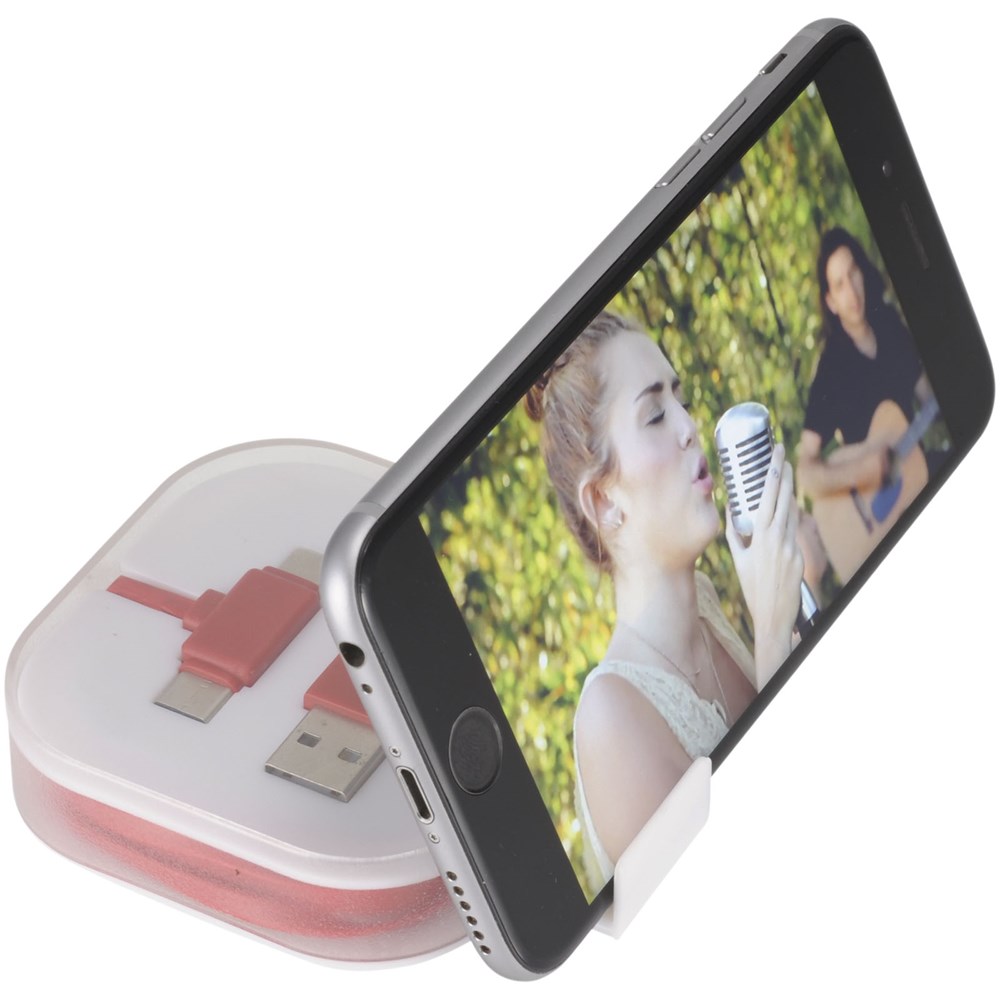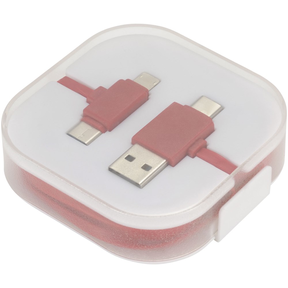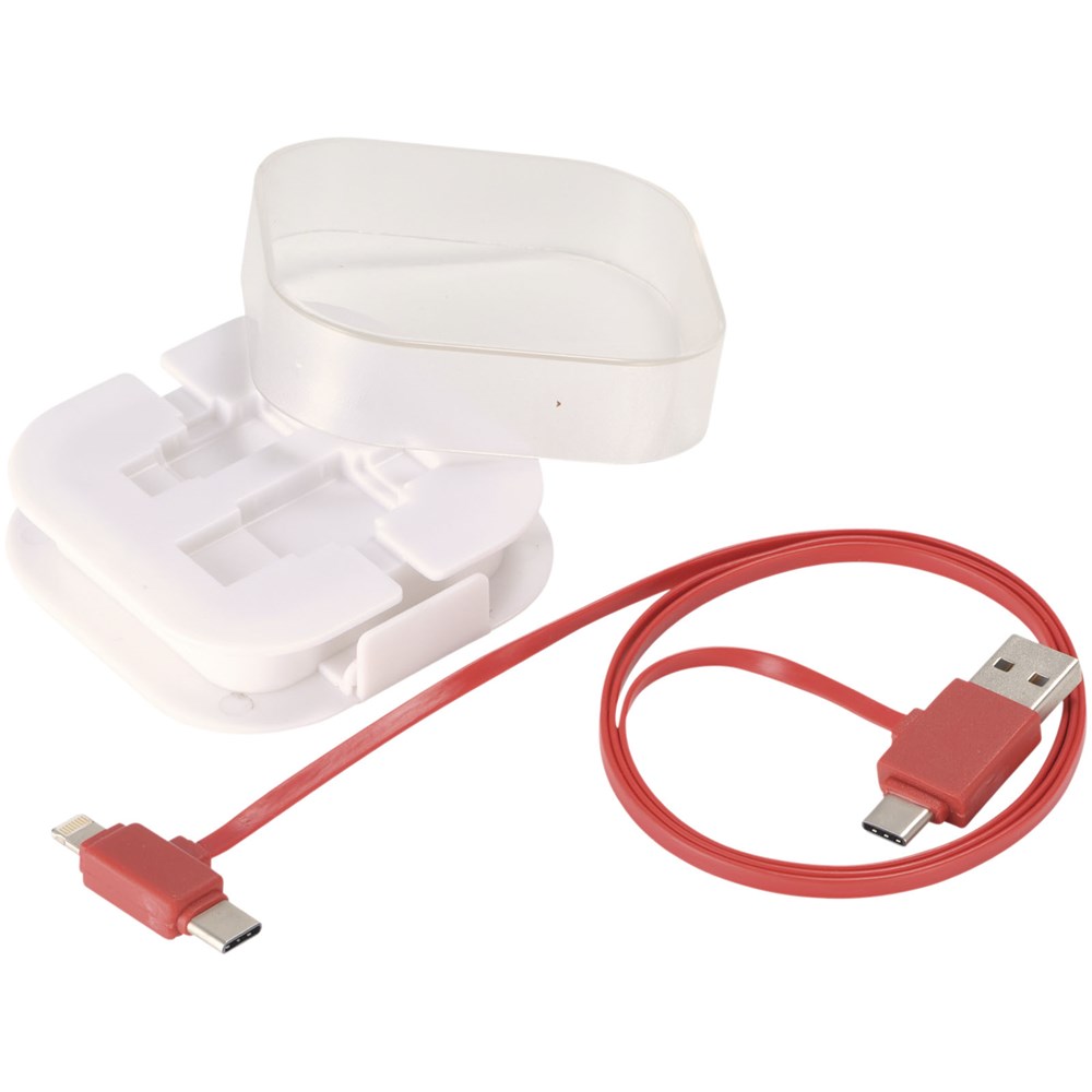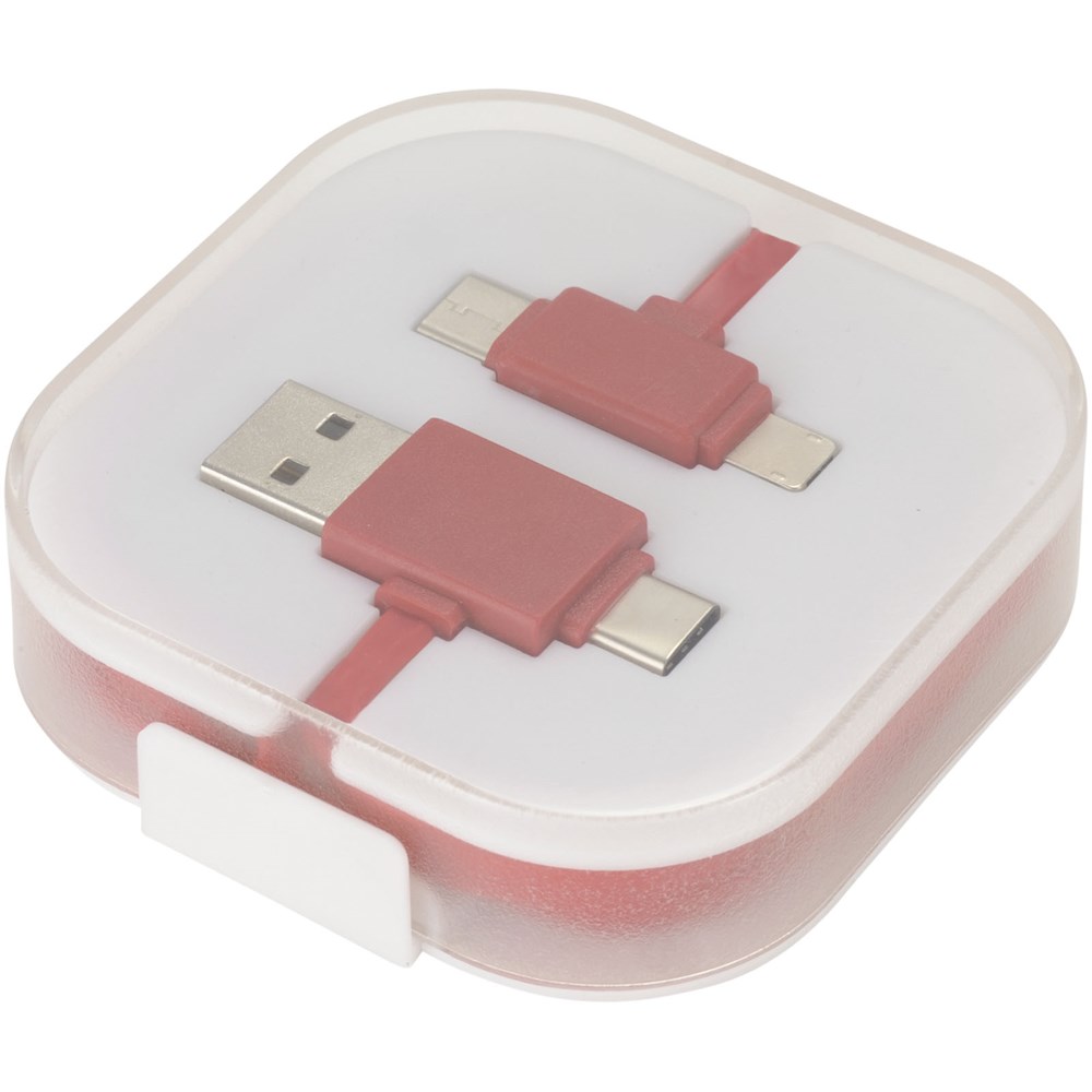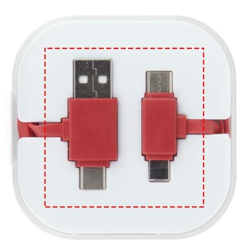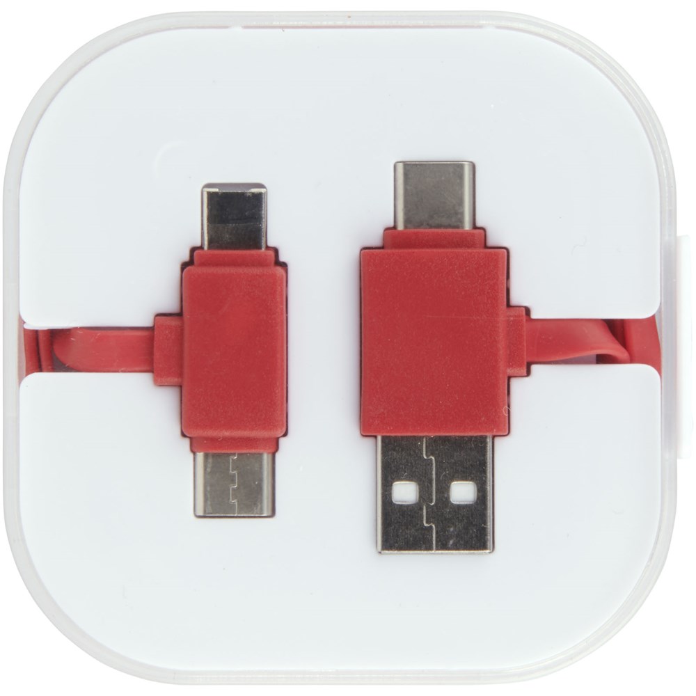 Das 4-in-1-Ladekabel in einer Hülle hat zwei Typ C, einen USB-Typ A und einen 2-in-1-Dual-kompatibelen Anschluss für Apple iOS und Android Geräte. Sowohl Ladefunktion als auch Datentransfer. Um Apple Geräte zu laden, nutzen Sie das Kabel mit der Seite, das keine Pins hat. Zum Laden von Android Geräten das Kabel mit der Seite nutzen, dass Pins hat.