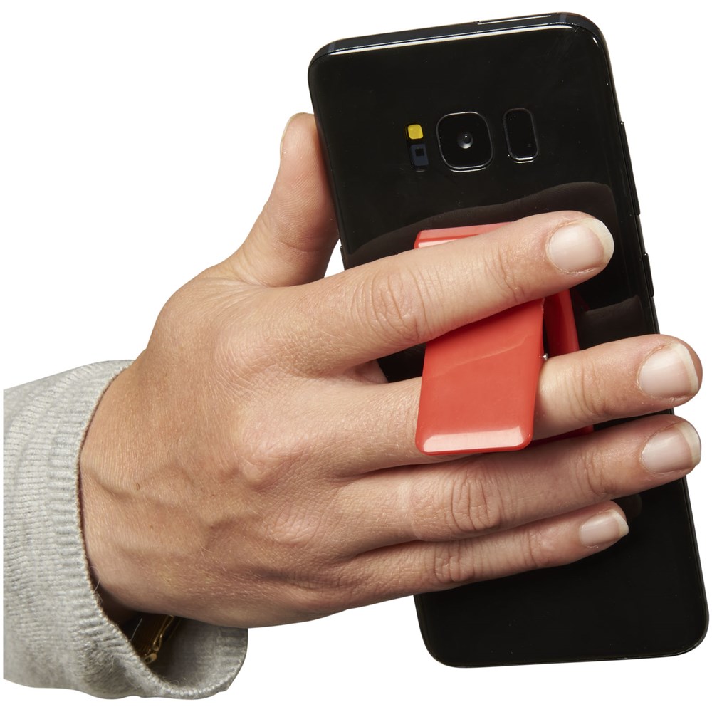 Mit diesem Telefonständer können Sie Ihr Smartphone auf komfortable Weise zum Ansehen von Filmen oder Freisprechanrufen aufstellen. Die klebende Rückseite haftet fest auf der Rückseite eines Smartphones. Kann auch für zusätzlichen Halt beim Tippen oder mit einem Stift verwendet werden.
