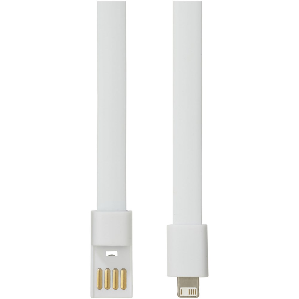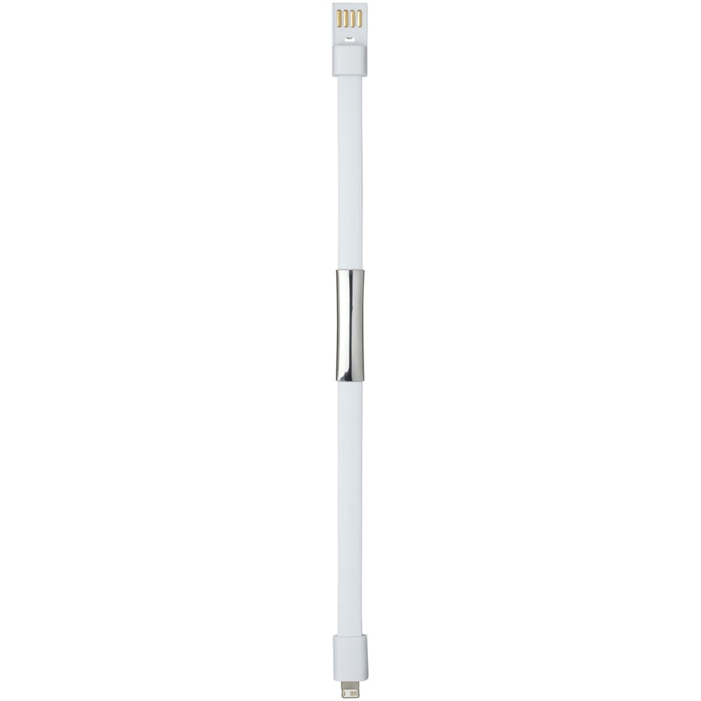 Dieses 2-in-1-Ladekabel verfügt über einen USB-A- und einen mit iOS- und Android-Geräten kompatiblen 2-in-1-Anschluss. Die beiden Enden können zusammengesteckt werden, wodurch der Artikel auch als Armband getragen werden kann. Auf der flachen Seite können Logos aufgebracht werden. Kann nur zum Laden verwendet werden.