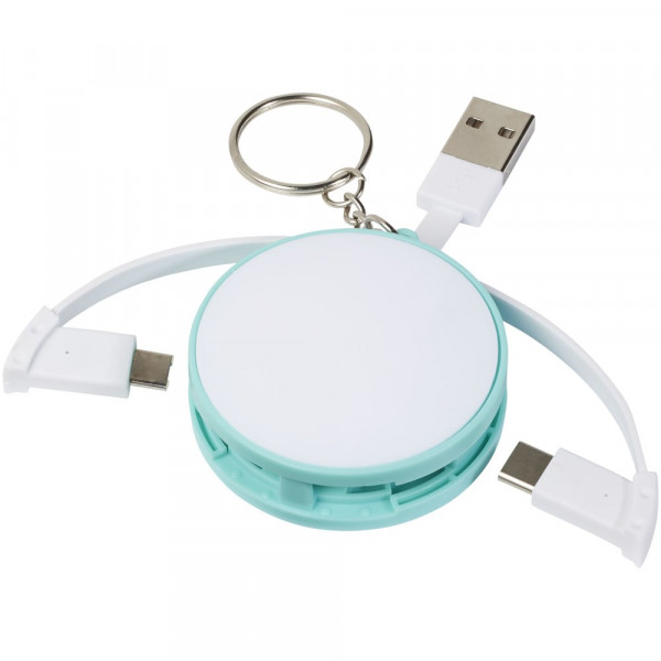 Dieser 3-in-1-Wrap-around-Schlüsselanhänger besteht aus einem USB-A-Kabel, einem Highspeed-USB-C-Kabel und einem mit iOS- und Android-Geräten kompatiblen 2-in-1-Anschluss. Die Kabel können zur Aufbewahrung um den Hauptteil eines Gerätes gewickelt werden. Verfügt für unterwegs über einen Schlüsselanhänger. iOS-Geräte werden über den Anschluss ohne Ladestifte geladen. Zum Laden von Android-Geräten ist die andere Seite mit Ladestiften zu verwenden.