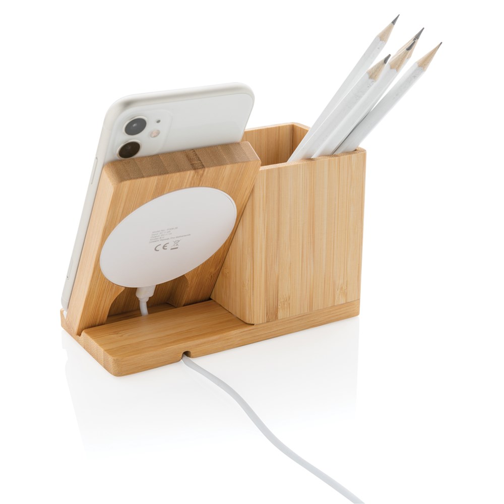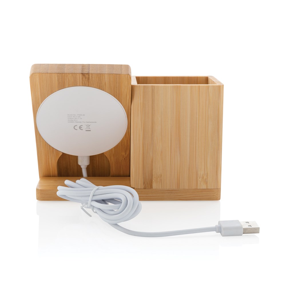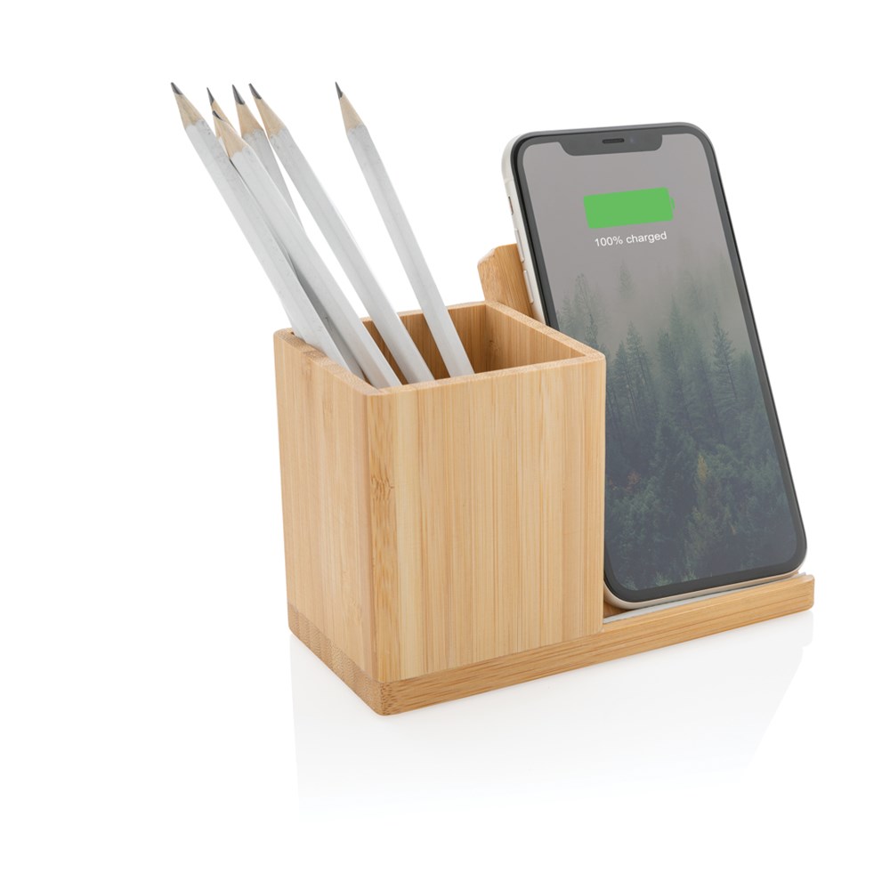Calgary 5W Wireless Charger und Stiftehalter aus Bambus