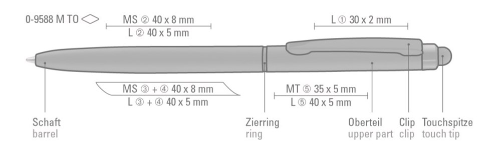 Metall-Drehkugelschreiber mit schwarz matter Oberfläche. Beschlagteile schwarz glänzend, gummiertes Schaftende für die Touchscreensteuerung.