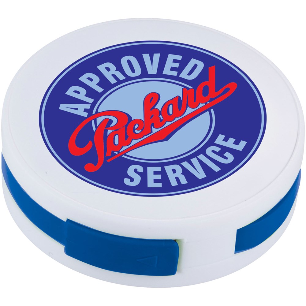Runder USB Hub mit 4 Anschlüssen und Eingangsanschluss im Inneren. Verpackt in einer Luftpolstertasche.