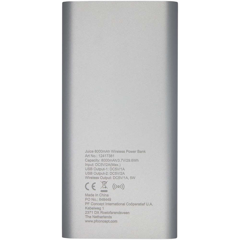 8000 mAh Powerbank mit Aluminiumgehäuse. Unterstützt kabelloses Laden mit 5 W und wird auch mit Mikro-USB-Ausgang geliefert, um das Aufladen per Kabel zu ermöglichen. Mit dem 8000 mAh Lithium-Polymer-Akku kann ein Smartphone mehrmals vollständig aufgeladen werden. Leistungsanzeige, die jederzeit den Energiepegel anzeigt. Mikro-USB-Anschluss: 5 V/2 A Ausgang: 5 V/2A. Kabelloser Ausgang 5 W. Inklusive PVC-freiem TPE Kunststoff Ladekabel. Lieferung in einer Standard-Geschenkbox.