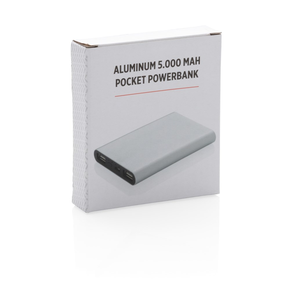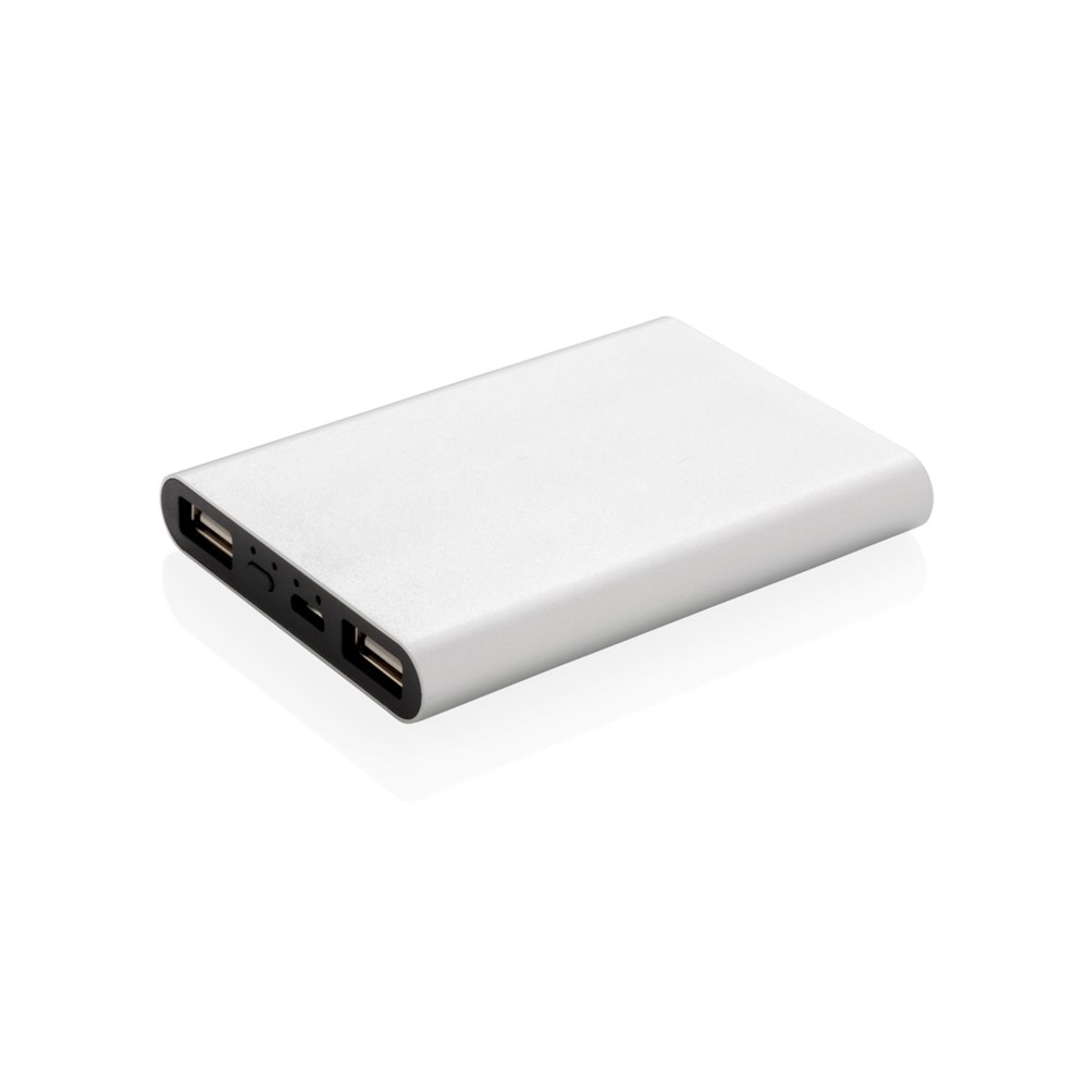Diese ultradünne 5.000 mAh Powerbank aus Aluminium mit einer A-Grade Lithium-Polymer Batterie lädt Ihr Smartphone bis zu 3 mal. Die LED's zeigen Ihnen den Ladestand der Powerbank an. Micro-USB Input: 5V/1.5A. Output: 5W; 5V/2.1A.