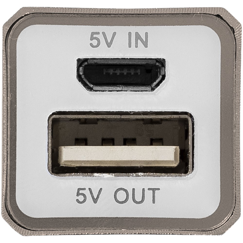 Die 2200 mAh Akkukapazität der Powerbank reicht aus, um ein mobiles Gerät oder Tablet (5V/1A) aufzuladen. Powerbank lädt über mitgeliefertes USB-Kabel und blaue Lichtanzeige schaltet sich ein, wenn sie voll aufgeladen ist. Metalleffektlack. Verpackt in einer weißen Geschenkbox.