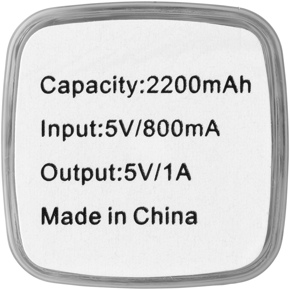 Die Akkukapazität von 2200 mAh bietet genug Leistung für das Aufladen eines Mobilgeräts. Die Powerbank lädt das Gerät mit dem mitgelieferten USB-Kabel in 2 Stunden auf. Sie leuchtet rot beim Laden, schaltet sich aus, wenn das Gerät vollständig aufgeladen ist, und leuchtet blau, wenn es vollständig entladen ist. Mit weißem Karton.