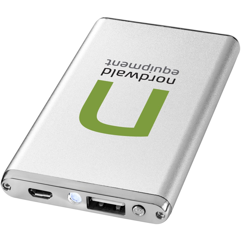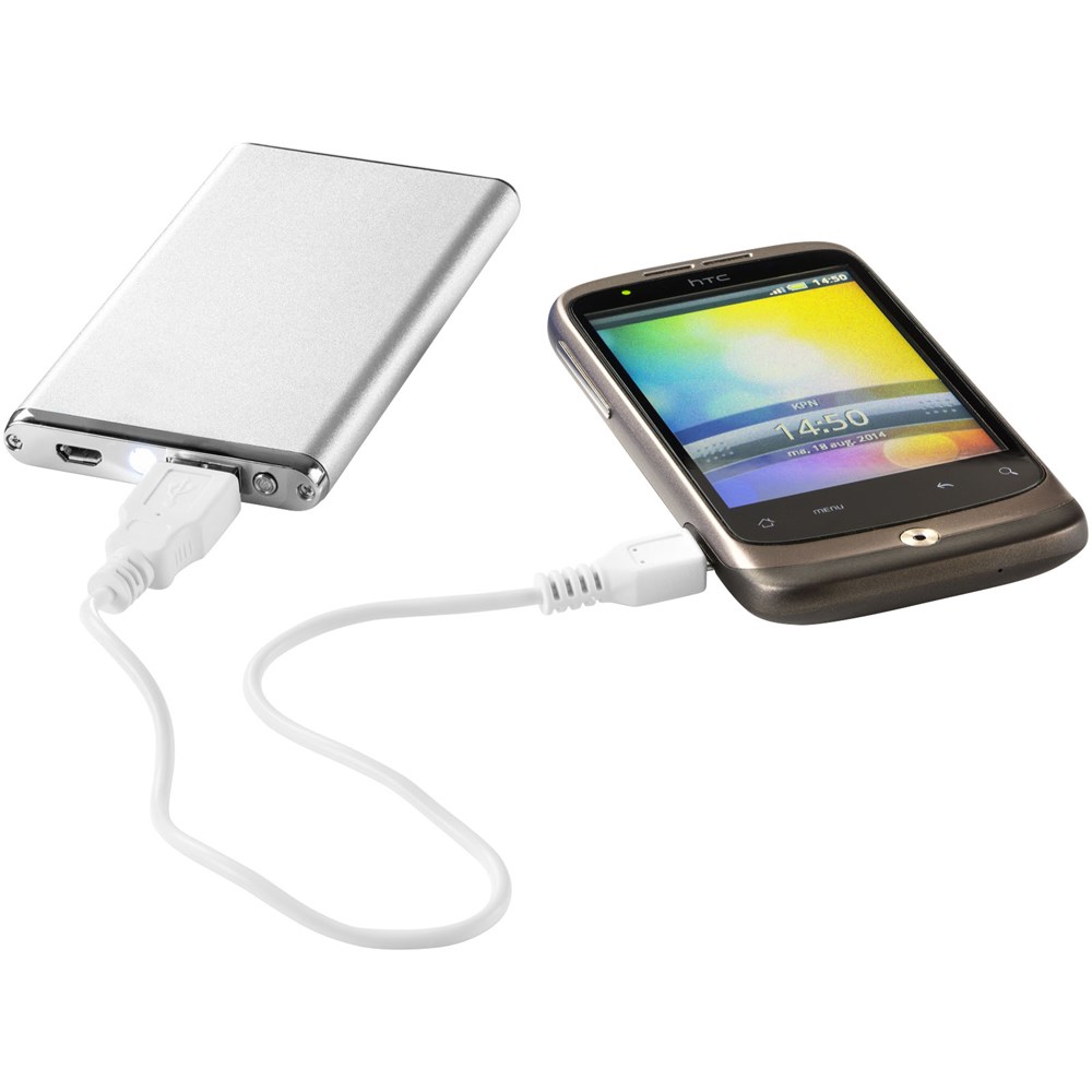 Powerbank mit einer Kapazität von 2200 mAh liefert genug Leistung zum Aufladen Ihres Smartphones. Metalleffektlack. Mit Ladekabeln und weißem Karton.