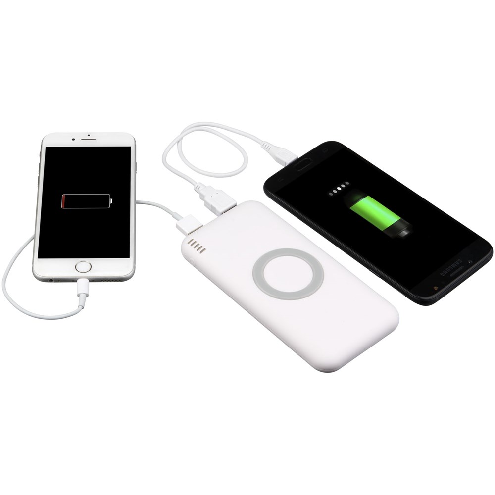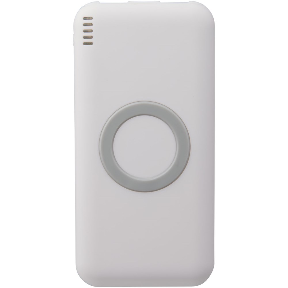 Die drahtlose Coma Powerbank ist mit Drahtlostechnologie und einem 6000-mAh-Akku ausgestattet, sodass Sie damit Ihre Geräte kabellos im Nu aufladen können. Sie können unterstützte Geräte ganz einfach aufladen, indem Sie sie auf die Powerbank legen. Die Powerbank kann mit einer einzigen Taste ganz einfach ein- und ausgeschaltet werden und die 5 LEDs geben den Betriebs- und Ladezustand an. USB/Micro-USB-Ladekabel im Lieferumfang enthalten. In einem weißen Geschenkkarton geliefert.