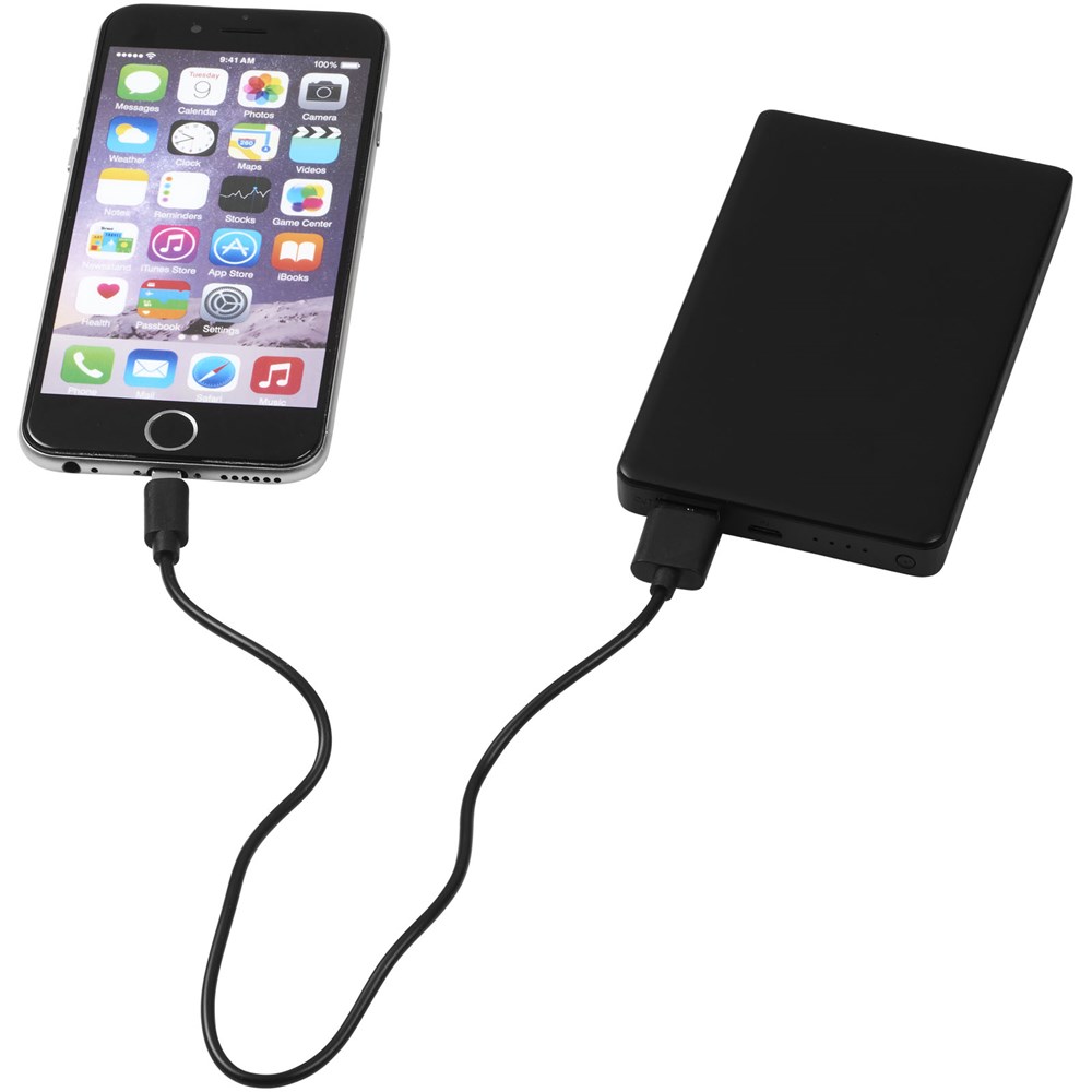 Die Cast 4000 mAh-Powerbank verfügt über einen 4000 mAh-Lithium-Polymer-Akku mit 5V/1A-Ausgang. Enthält ein 2-in-1-Ladekabel, das mit allen iOS-Telefonen und Geräten mit einem Micro-USB-Anschluss kompatibel ist. Wenn der vordere Teil mittels Laser verziert wird, leuchtet das Firmenlogo!.