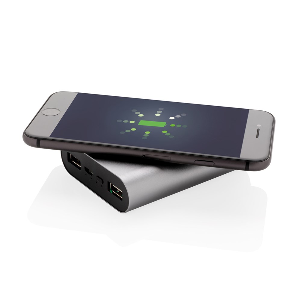 Schicke 5.000 mAh Powerbank im Taschenformat. Die A-Grade 5.000 mAh Lithium-Polymer Batterie erlaubt es Ihnen bei voller Ladung Ihr Smartphone bis zu 3 mal aufzuladen - mit herkömmlichem USB-Port oder über das 5W Wireless Charging Pad. Die LED's zeigen Ihnen den Ladestand der Powerbank an, so dass Sie immer wissen wann es Zeit wird sie wieder zu laden. Micro-USB Port-In: 5V/1.5A; Output: 5V/2.1A.; Wireless Output 5W 5V/1A.