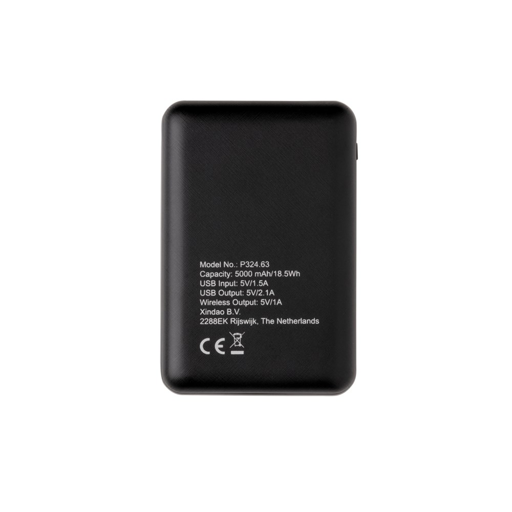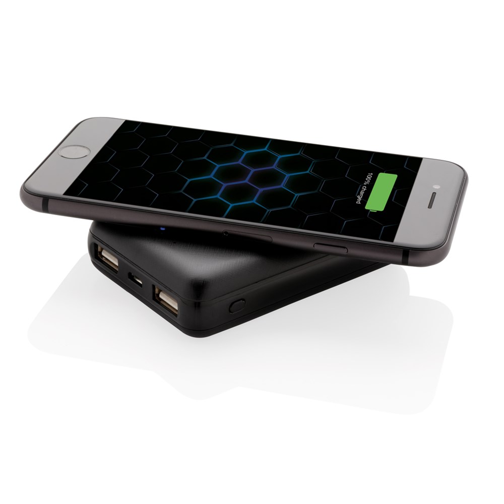 Diese ultradünne 5.000 mAh Powerbank mit einer A-Grade Lithium-Polymer Batterie lädt Ihr Smartphone herkömmlich per USB-Port oder als 5W Wireless Charger. Das Gehäuse aus ABS, die LED's zeigen Ihnen den Ladestand der Powerbank an. Micro USB Port in: 5V/1.5A. Output: 5W; 5V/2.1A Wireless Output: 5V/1A