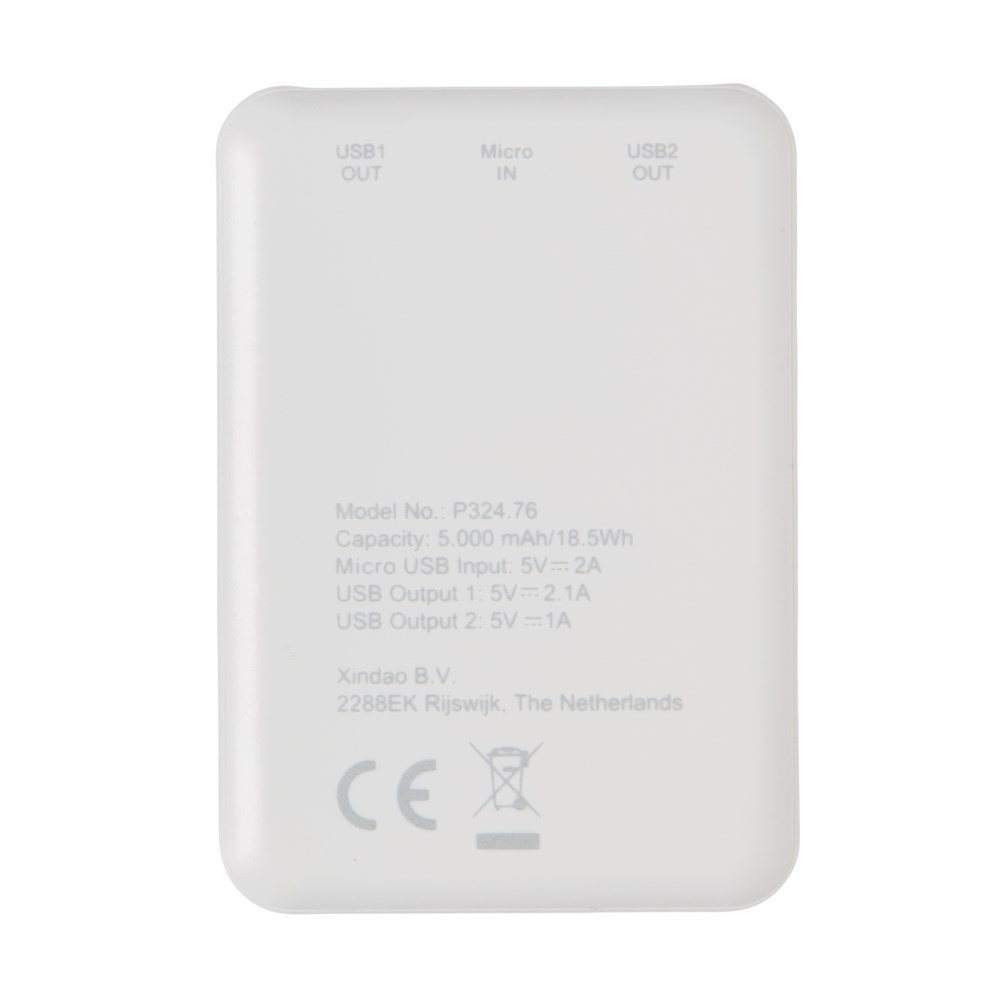 5.000 mAh Powerbank aus leichtem ABS im Taschenformat. Die A-Grade 5.000 mAh Lithium-Polymer Batterie erlaubt es Ihnen bei voller Ladung Ihr Smartphone 4-5 mal aufzuladen. Mit Dual USB-Port. Die LED's zeigen Ihnen den Ladestand der Powerbank an, so dass Sie immer wissen wann es Zeit wird sie wieder zu laden. Input: 5V/2A. Output USB 1: 5V/2A. Output USB 2: 5V/1A.