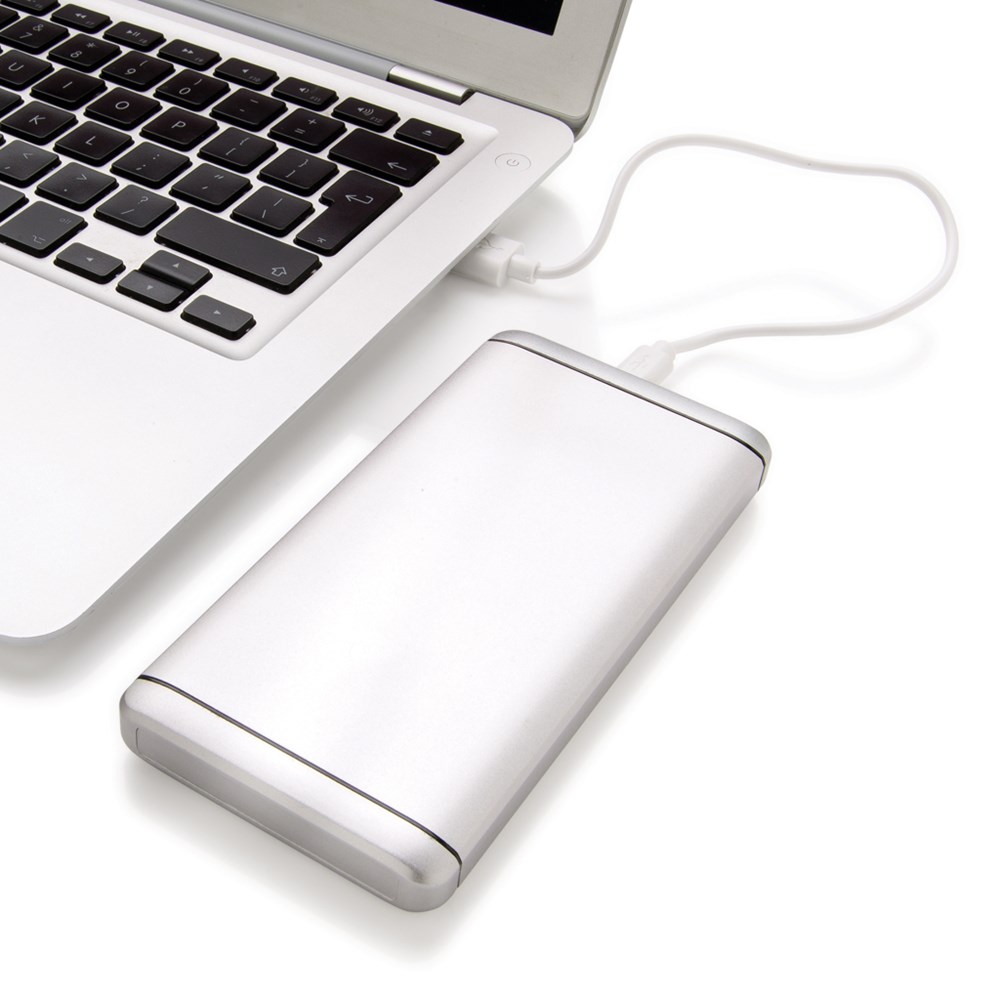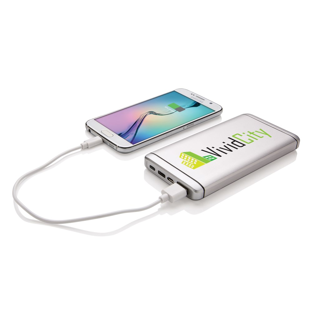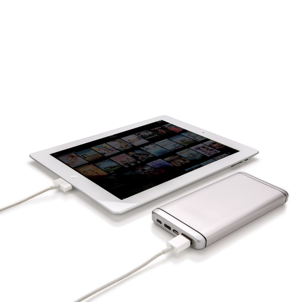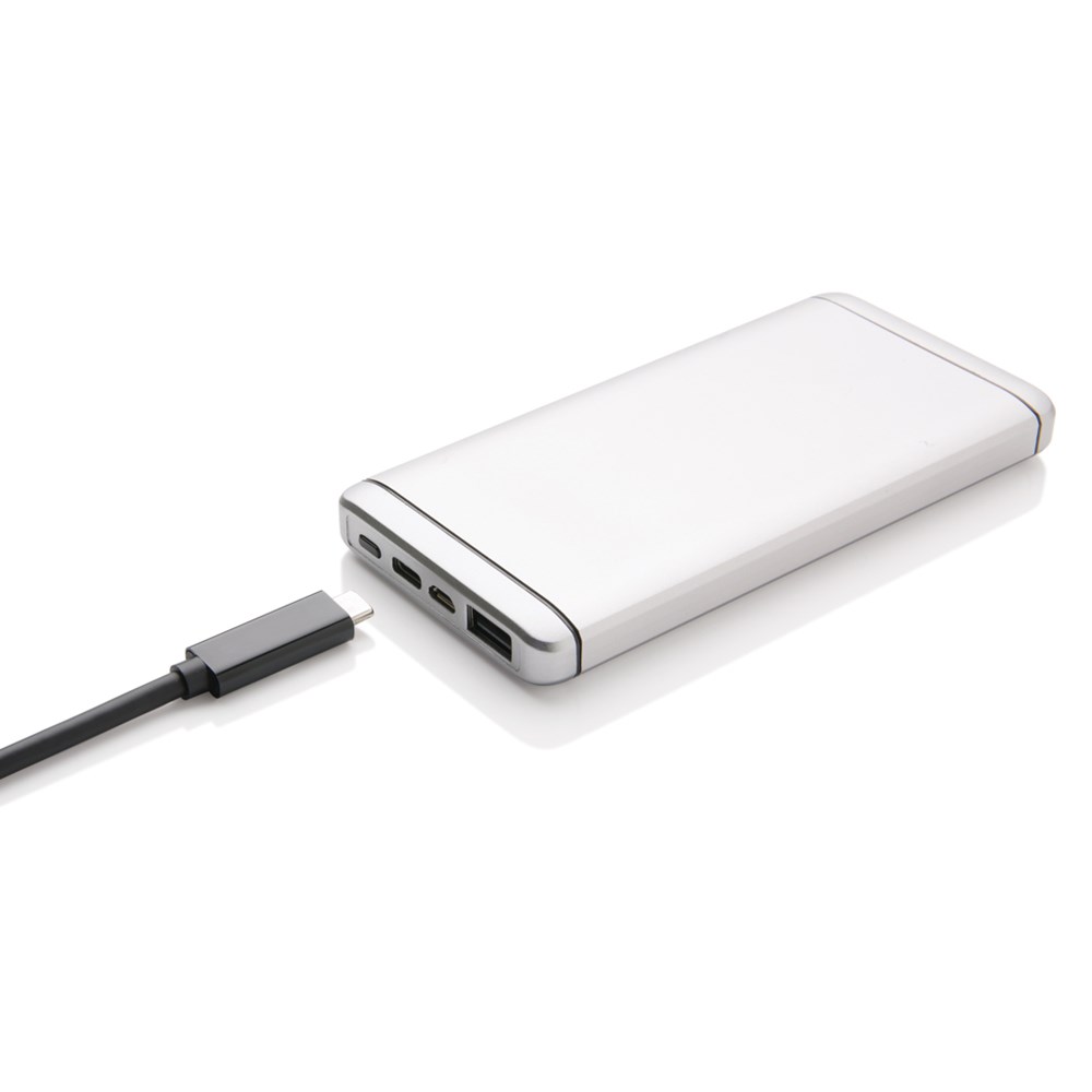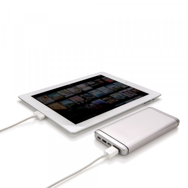 10.000 mAh Powerbank aus eloxiertem Aluminium. Die Powerbank verfügt über einen USB-Ausgang sowie einen Type C Ausgang. Output 5V/1A, Input 1A.
