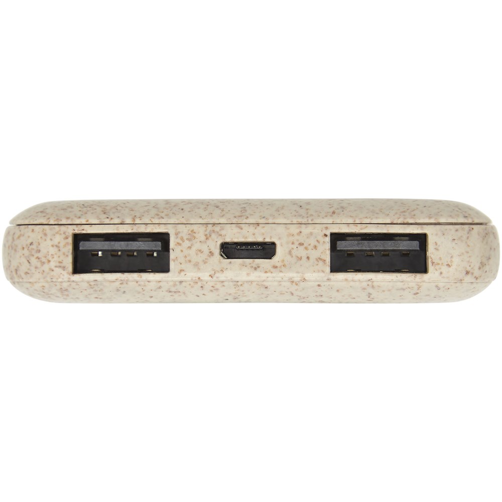 5000 mAh leichte und kompakte Powerbank aus einer Mischung von Weizenstroh und Kunststoff, wodurch die benötigte Menge an Kunststoff reduziert wird. Dualer USB-Ausgang, über den 2 Geräte gleichzeitig aufgeladen werden können. Verpackt in einer Geschenkschachtel und wird mit einer Anleitung geliefert (beides aus nachhaltigem Material). Ein Micro-USB-Ladekabel ist im Lieferumfang enthalten.