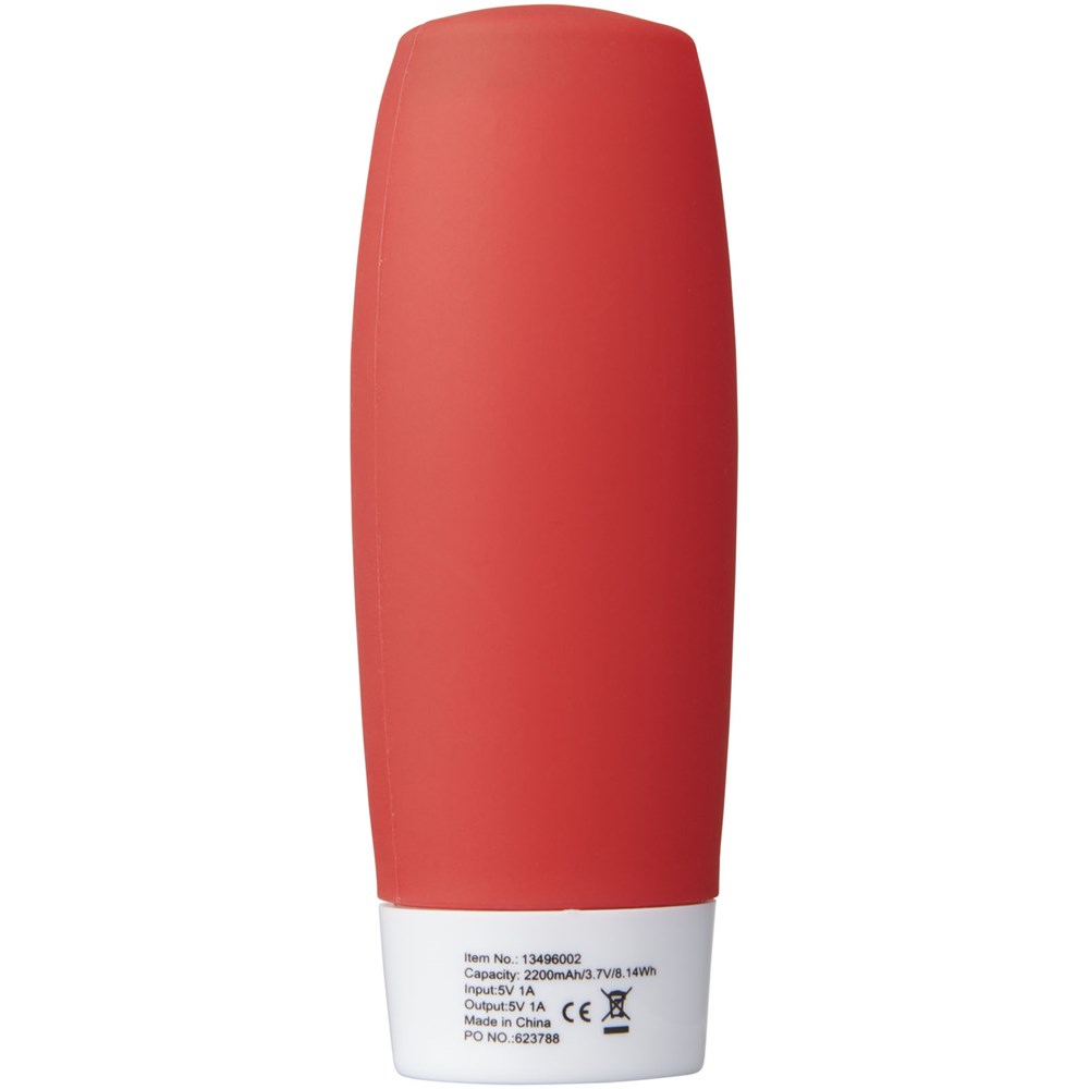 Diese einzigartige 2200-mAh-Powerbank dient zwei Zwecken: blitzschnelles Aufladen Ihrer Gerät und Stressabbau durch die weiche Gummioberfläche. Beim Aufladen der Powerbank blinkt das rote LED-Anzeigelämpchen. Beim Aufladen eines Geräts leuchtet das Anzeigelämpchen blau. USB-Kabel im Lieferumfang enthalten.
