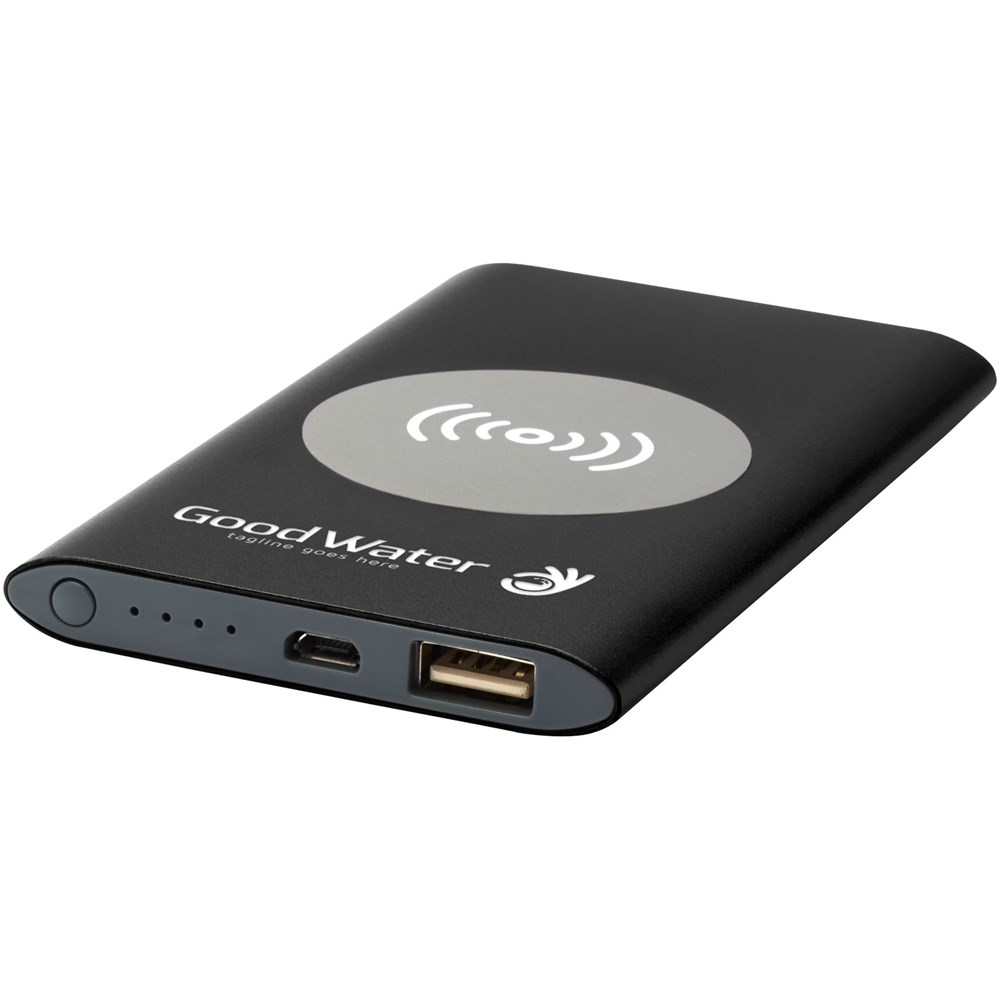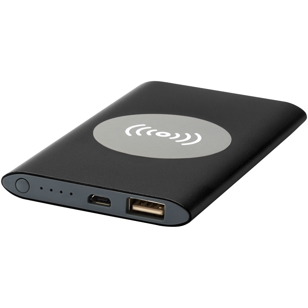 4000 mAh Powerbank mit Aluminiumgehäuse. Unterstützt kabelloses Laden mit 5 W und wird auch mit Mikro-USB-Ausgang geliefert, um das Aufladen per Kabel zu ermöglichen. Mit dem 4000 mAh Lithium-Polymer-Akku kann ein Smartphone vollständig aufgeladen werden. Leistungsanzeige, die jederzeit den Energiepegel anzeigt. Mikro-USB-Anschluss: 5 V/2 A Ausgang: 5 V/2A. Kabelloser Ausgang 5 W. Inklusive PVC-freiem TPE Kunststoff Ladekabel. Lieferung in einer Standard-Geschenkbox.
