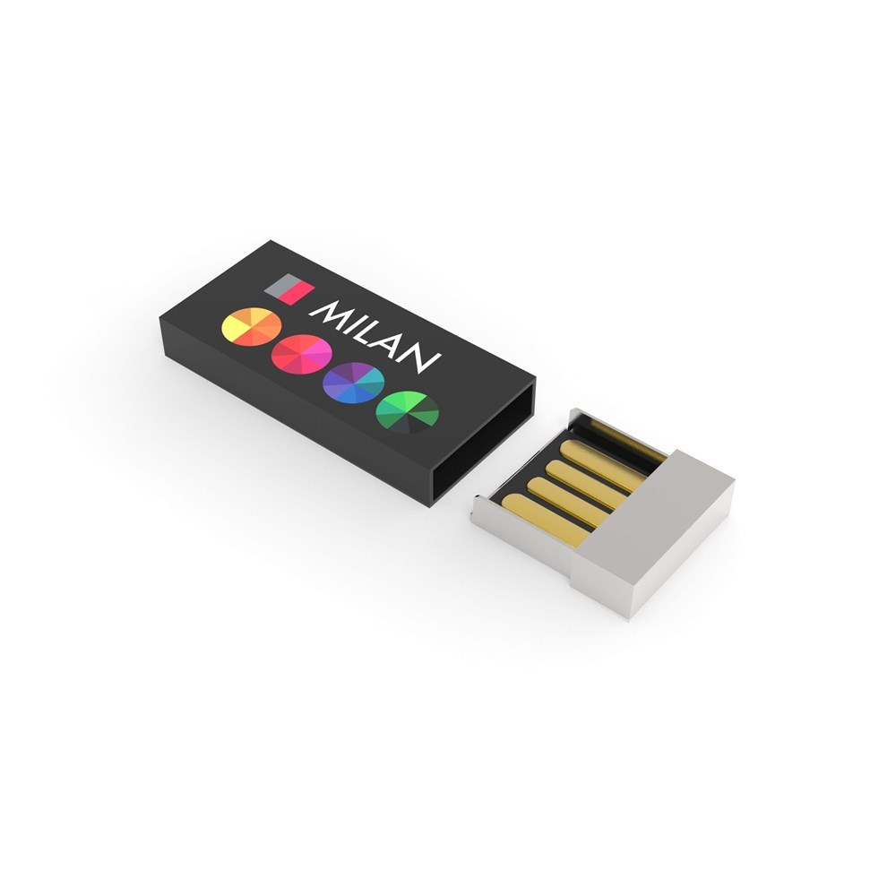 USB Milan, klare Linien und ein magnetischer Verschluss. Sehr stilvolles und puristisches Design, das ist der USB Milan. Das matte Gehäuse aus eloxiertem Aluminium bietet genug Platz für jede Personalisierung. Der USB Speicher ist in der glänzenden Chrome-Halterung integriert. Ein unsichtbarer Magnet hält beide Teile fest zusammen. Patentiert und nur bei uns erhältlich. Wählen Sie einen Premium-USB-Chip für höhere Geschwindigkeit und lebenslange Garantie oder den günstigeren Basic-USB-Chip.