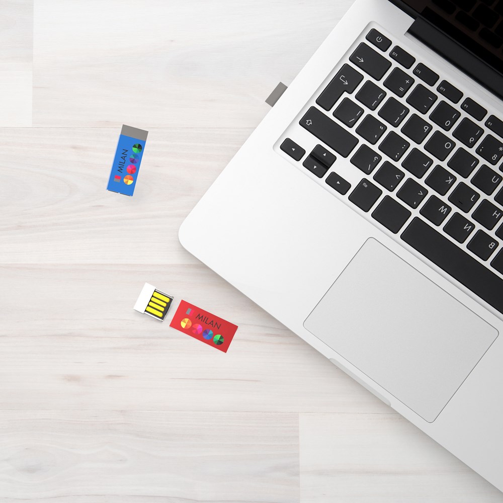 USB Milan, klare Linien und ein magnetischer Verschluss. Sehr stilvolles und puristisches Design, das ist der USB Milan. Das matte Gehäuse aus eloxiertem Aluminium bietet genug Platz für jede Personalisierung. Der USB Speicher ist in der glänzenden Chrome-Halterung integriert. Ein unsichtbarer Magnet hält beide Teile fest zusammen. Patentiert und nur bei uns erhältlich. Wählen Sie einen Premium-USB-Chip für höhere Geschwindigkeit und lebenslange Garantie oder den günstigeren Basic-USB-Chip.