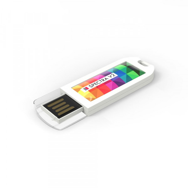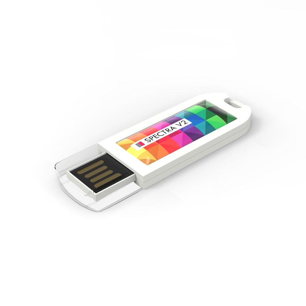 USB Spectra V2: farbenfroh und günstig. Dieser auffällige USB Stick kann mit einem Vollfarbdruck mit Doming auf einer Seite personalisiert werden. Individuelle Personalisierung ist ebenfalls möglich. Wählen Sie einen Premium-USB-Chip für höhere Geschwindigkeit und lebenslange Garantie oder den günstigeren Basic-USB-Chip.