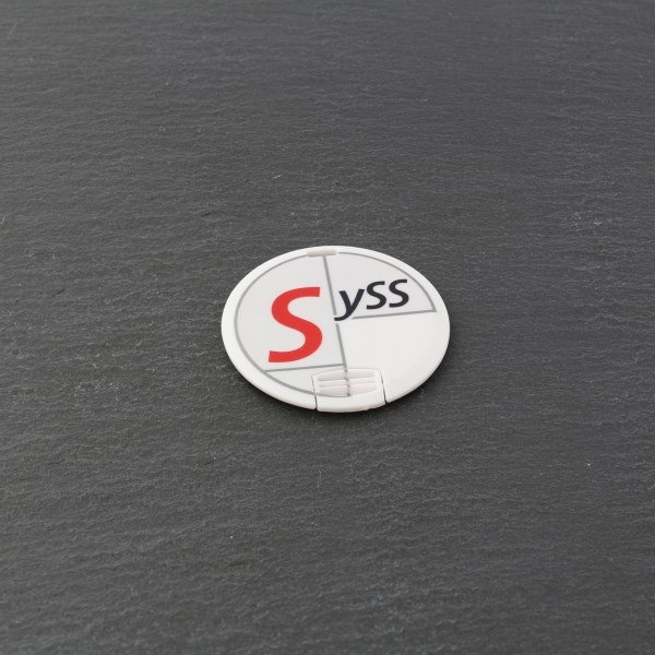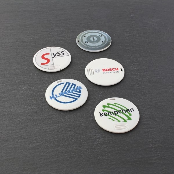 Größe (L x B x H): 43 x 43 x 3 mm, Gewicht: 4 g, mögliche Veredelungsbereiche: Vorderseite, Größe Ø: 41 mm, Rückseite, Größe Ø: 41 mm, Einfärben Kunststoff ab 1000 Stück