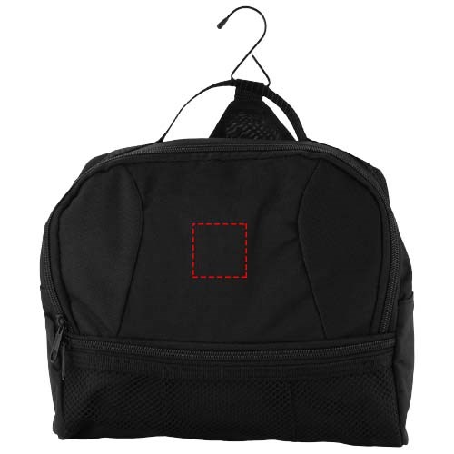 Kulturbeutel mit Metallhaken an der Rückseite, elastischen Faltentaschen für Toilettenartikel, Front Reißverschluss Netztasche für Zubehör und einem Tragegriff.