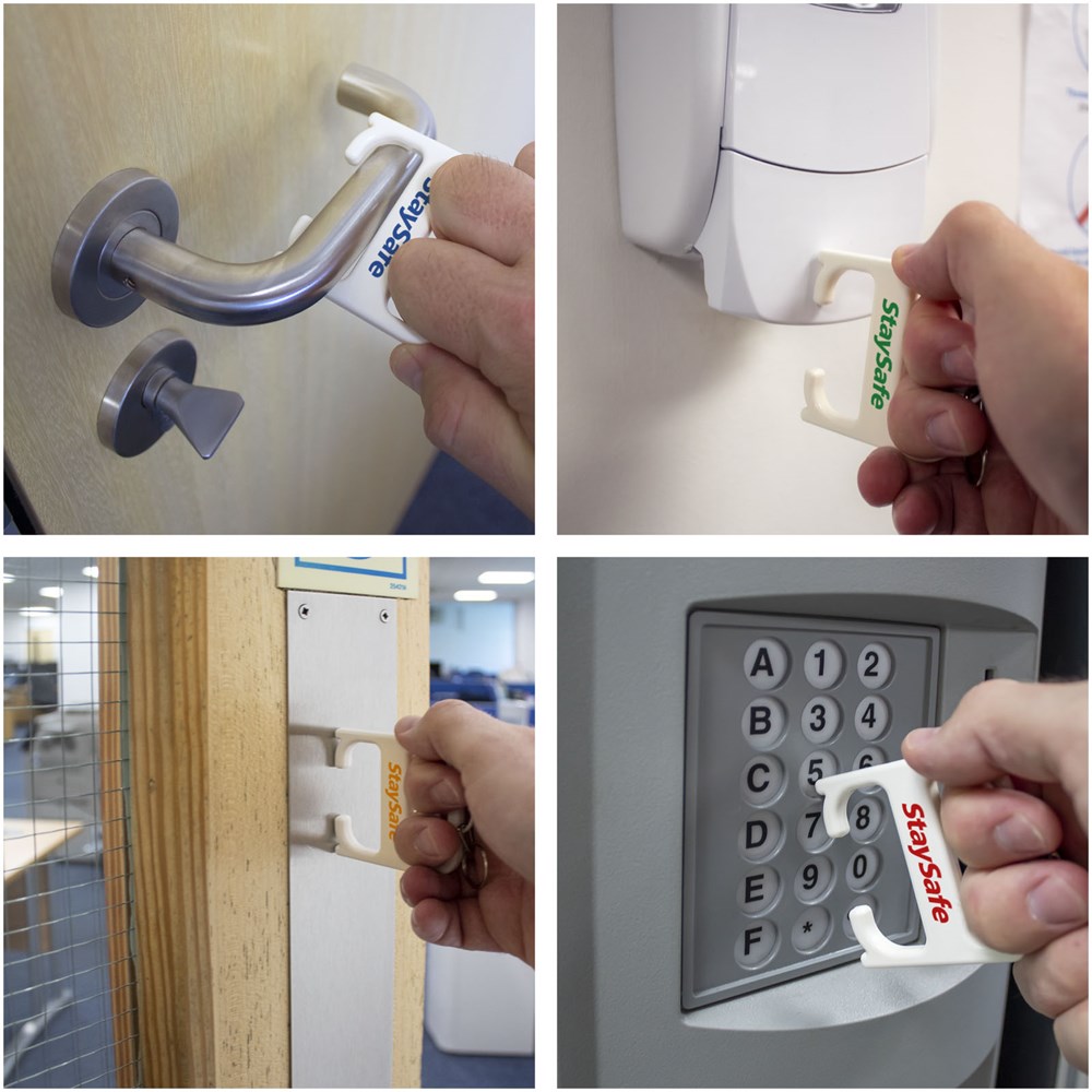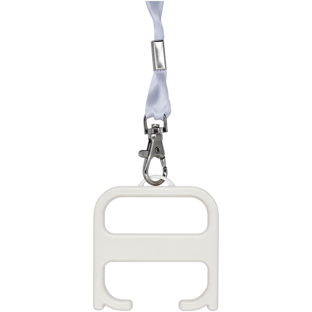 Ein robustes Hygienetool, mit dem der Anwender Türen öffnen und Tasten drücken kann, ohne direkten Kontakt zu haben. Hergestellt aus verstärkten Materialien für zusätzliche Haltbarkeit. Dieses Produkt enthält die antimikrobielle Biomaster-Technologie, die den Schutz vor dem Wachstum schädlicher Mikroorganismen während der Lebensdauer des Produkts bietet. Wird mit einem Lanyard geliefert.