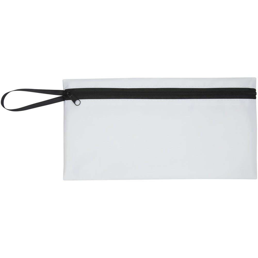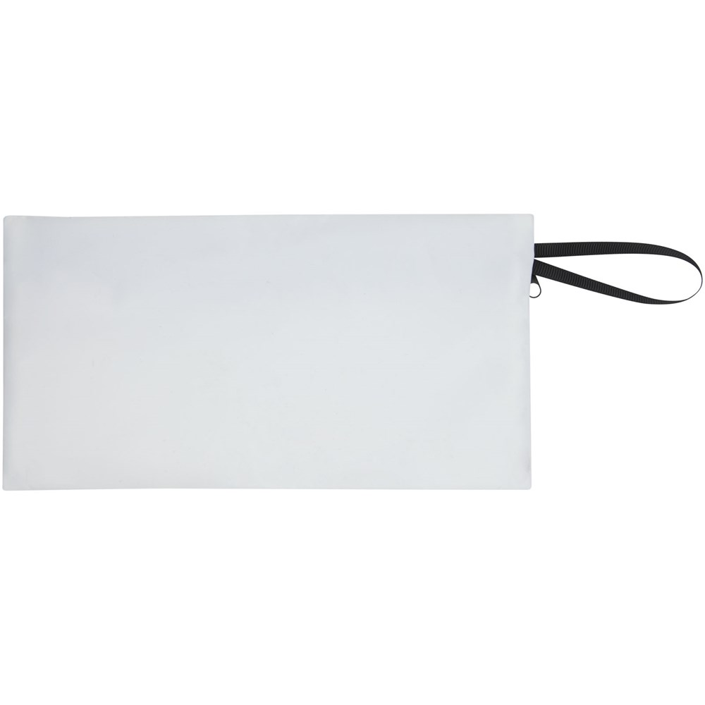 Tasche mit Reißverschluss, die zum Aufbewahren von Gesichtsmasken verwendet werden kann, aber auch perfekt ist, um Hygieneartikel, Reisezubehör und Dinge des täglichen Bedarfs sicher und hygienisch zu verstauen. Verfügt über eine Stoffschlaufe, die an einer Tasche befestigt werden kann.